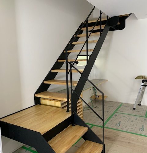 ナチュラルな中に黒を指し色にした鋼製階段
